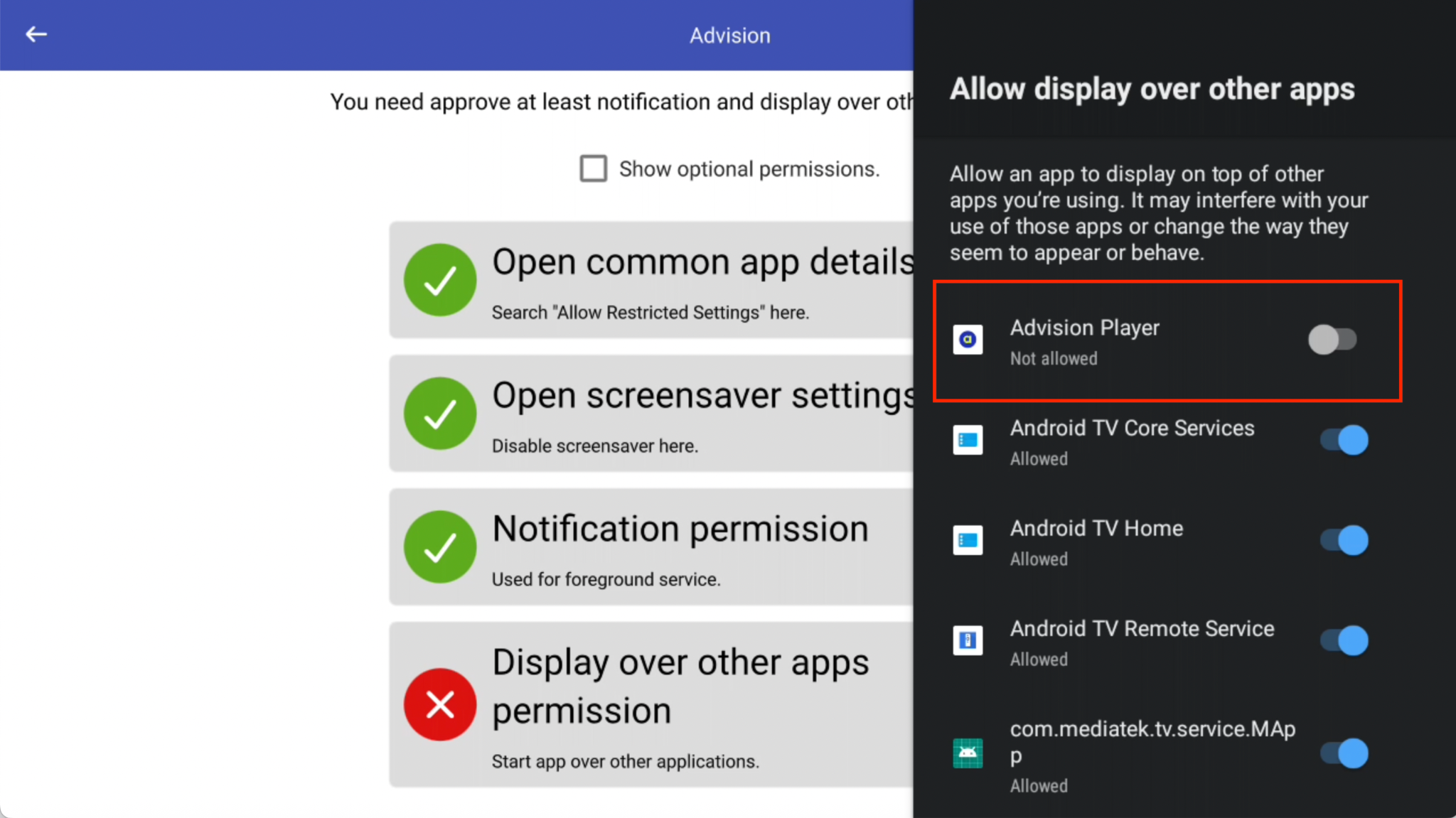Locate the downloaded fileAdvisionPlayer_latest.apk.